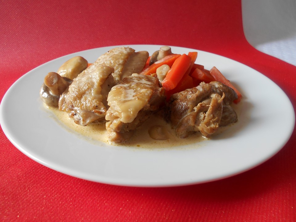 Une fois la sauce terminée, remettre les parties solides à chauffer pendant quelques minutes puis servir accompagné de carottes glacées.
