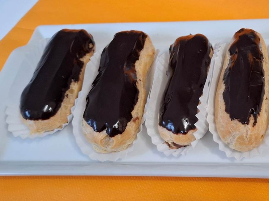 Sur les photos ci-dessus, les éclairs sont glacés à la ganache (résultat très goûteux) alors que les choux sont glacés au fondant (résultat très sucré).
